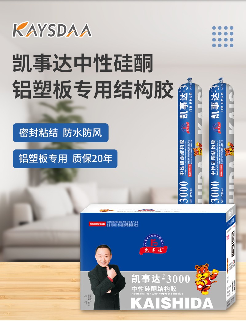 凱事達(dá)3000中性硅酮結(jié)構(gòu)膠,適用于石材、鋁塑板、平板玻璃、展柜 雨棚、陽光房,超強(qiáng)防水耐候